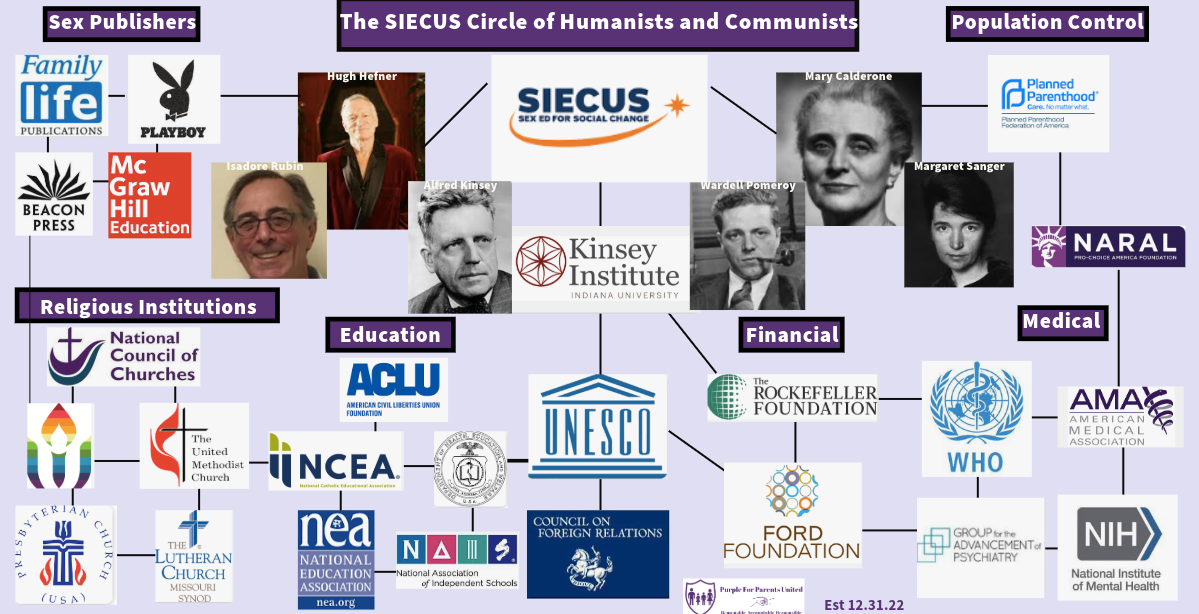 SIECUS was founded by Communists and Humanists determined to destroy the moral fabric of America. Below is a look at just some of the names involved in establishing the "sex ed" arm of the Kinsey Institute meant to groom children for all forms of sexual perversion from pedophilia, transgenderism and beastiality.
